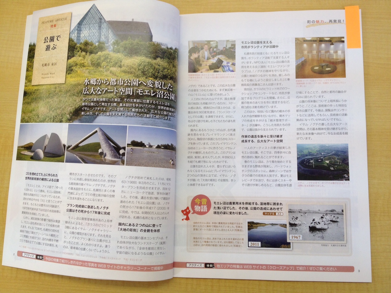 ゼンリンさんから発行されているフリーペーパー「Actiz mi-ru-to(みると)」の札幌市東区版が発行され、モエレ沼公園が特集されています!